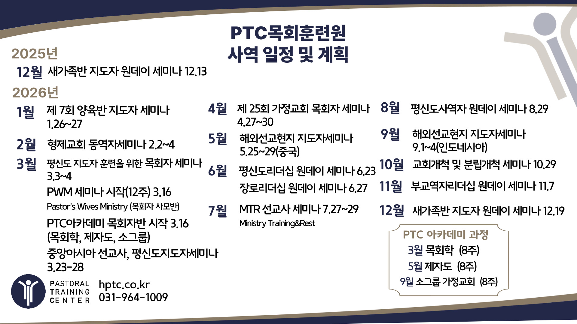 PTC목회훈련원의 사역스케쥴입니다.